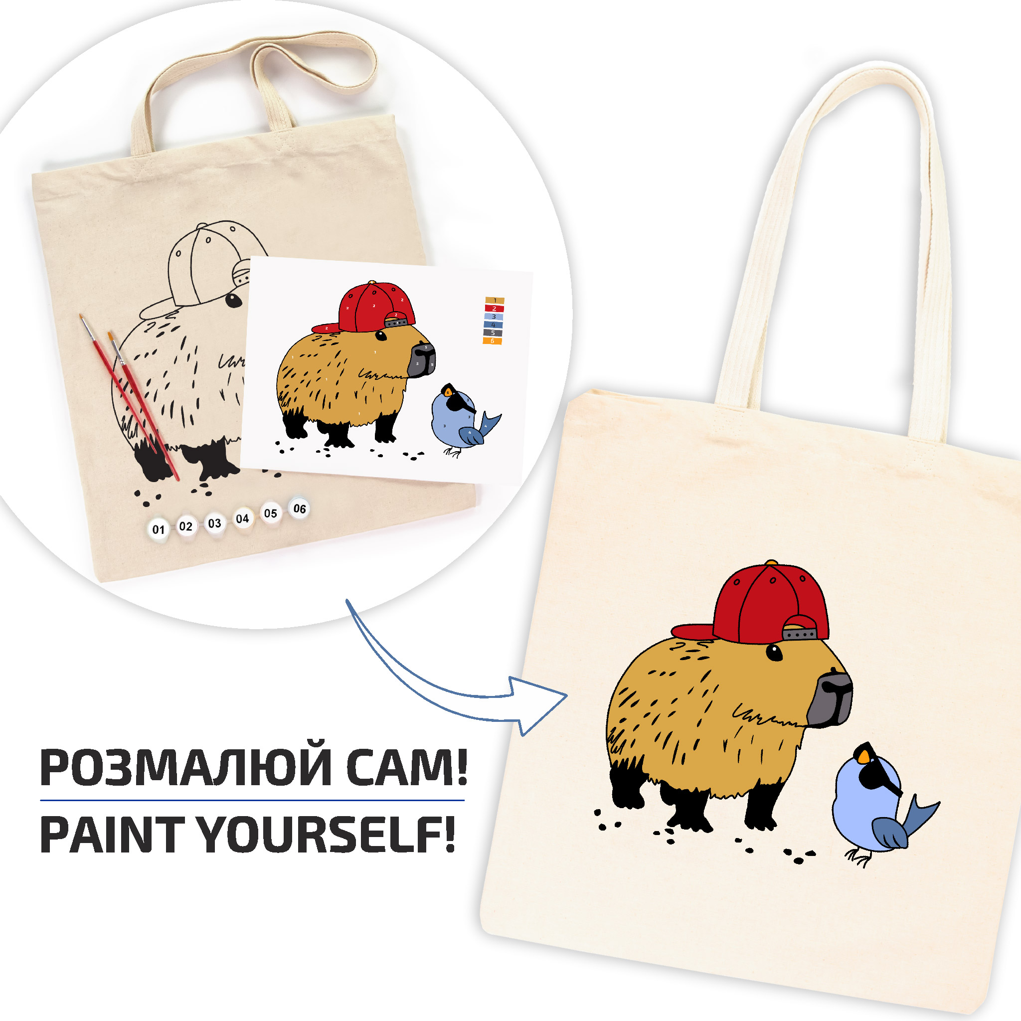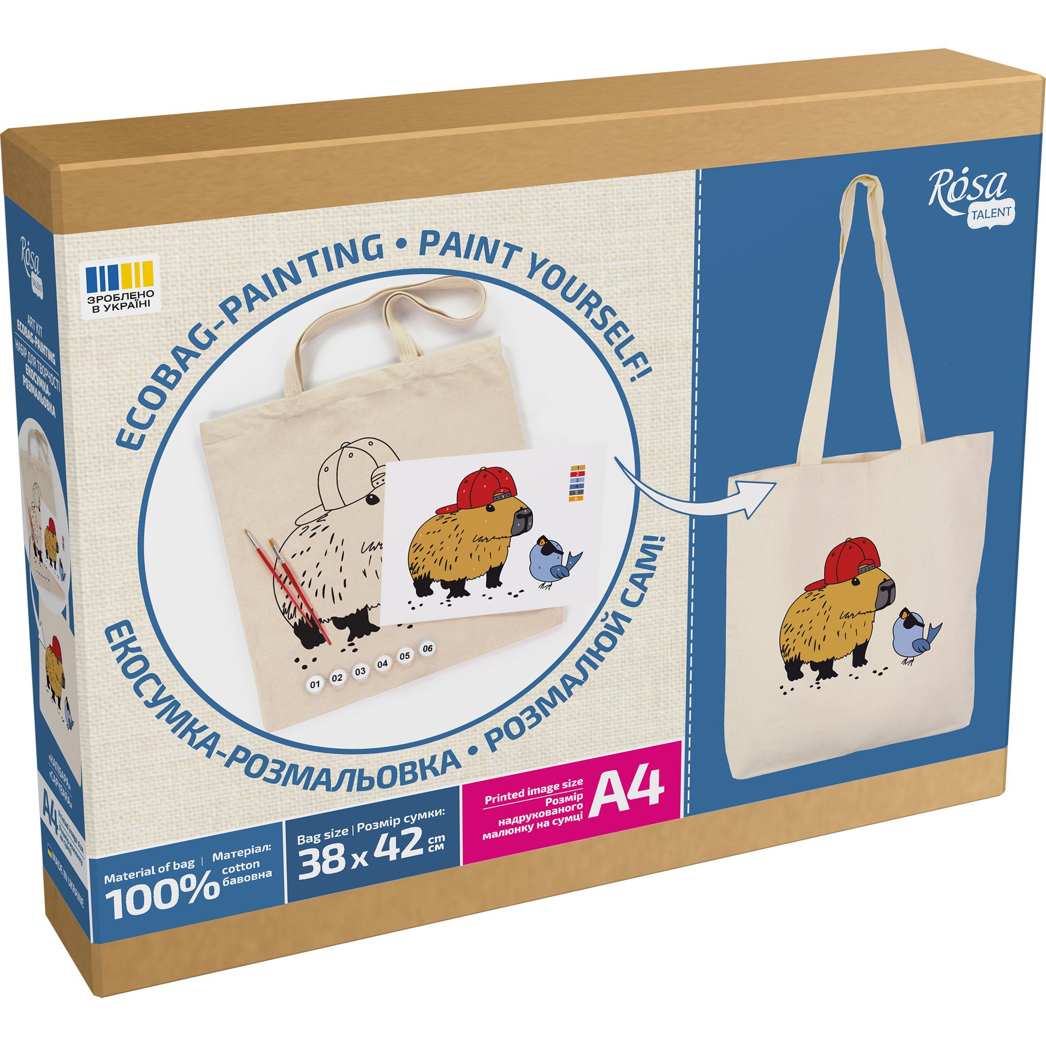 Набір, екосумка-розмальовка, „Капібара“, бавовна 220 г/кв.м, 38х42см, ROSA Talent