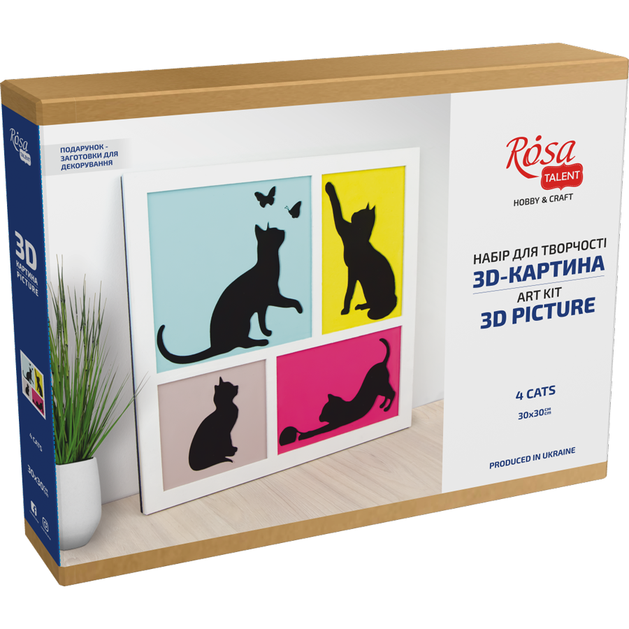 „4 Cats“ Набір картина 3D, ДВП, 30х30см ROSA Talent
