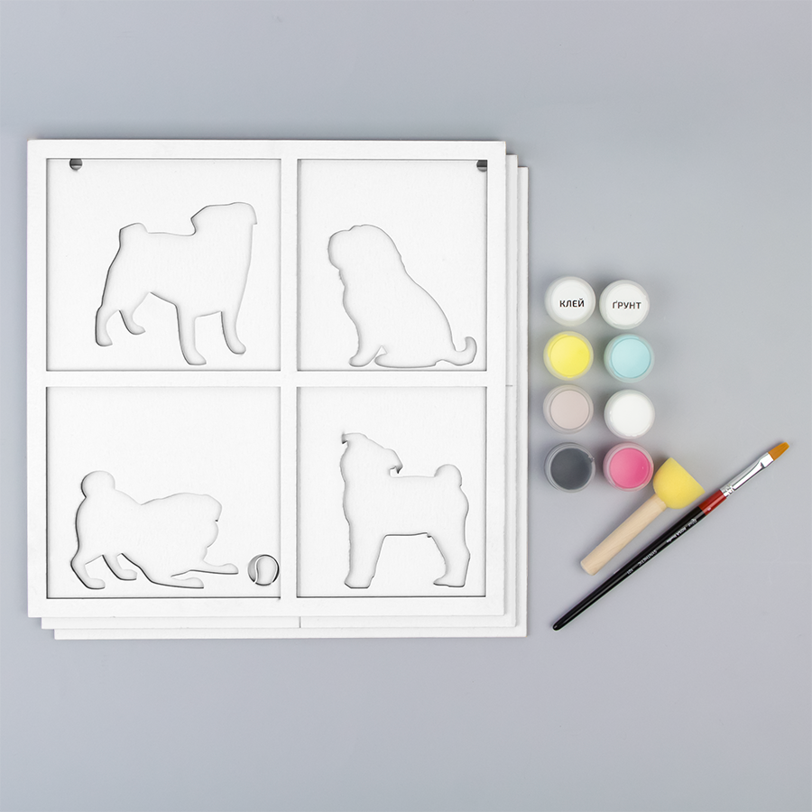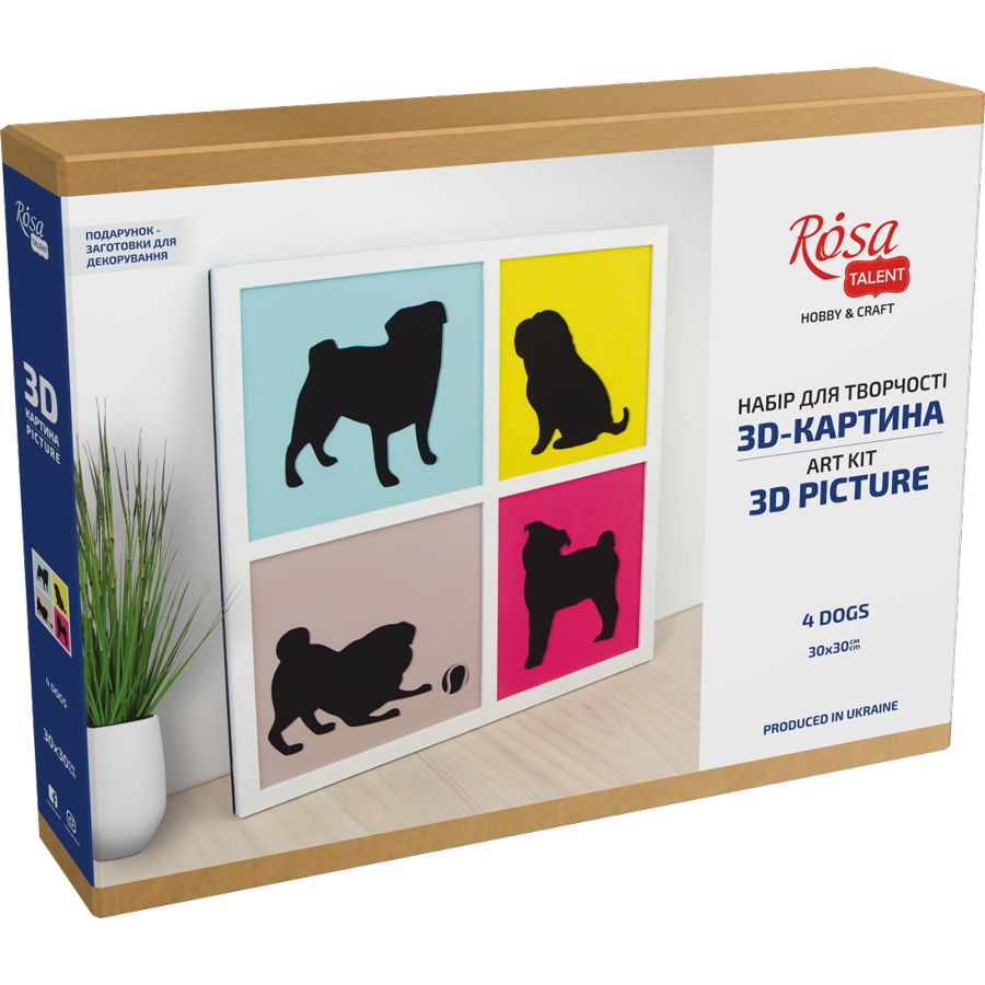 „4 Dogs“ набір картина 3D, ДВП, 30х30см ROSA Talent
