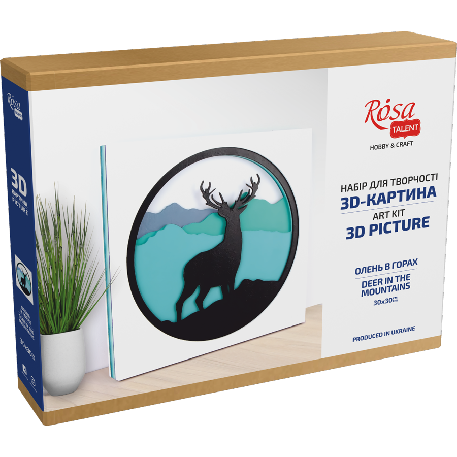 „Олень в горах“ набір картина 3D, ДВП, 30х30см ROSA Talent