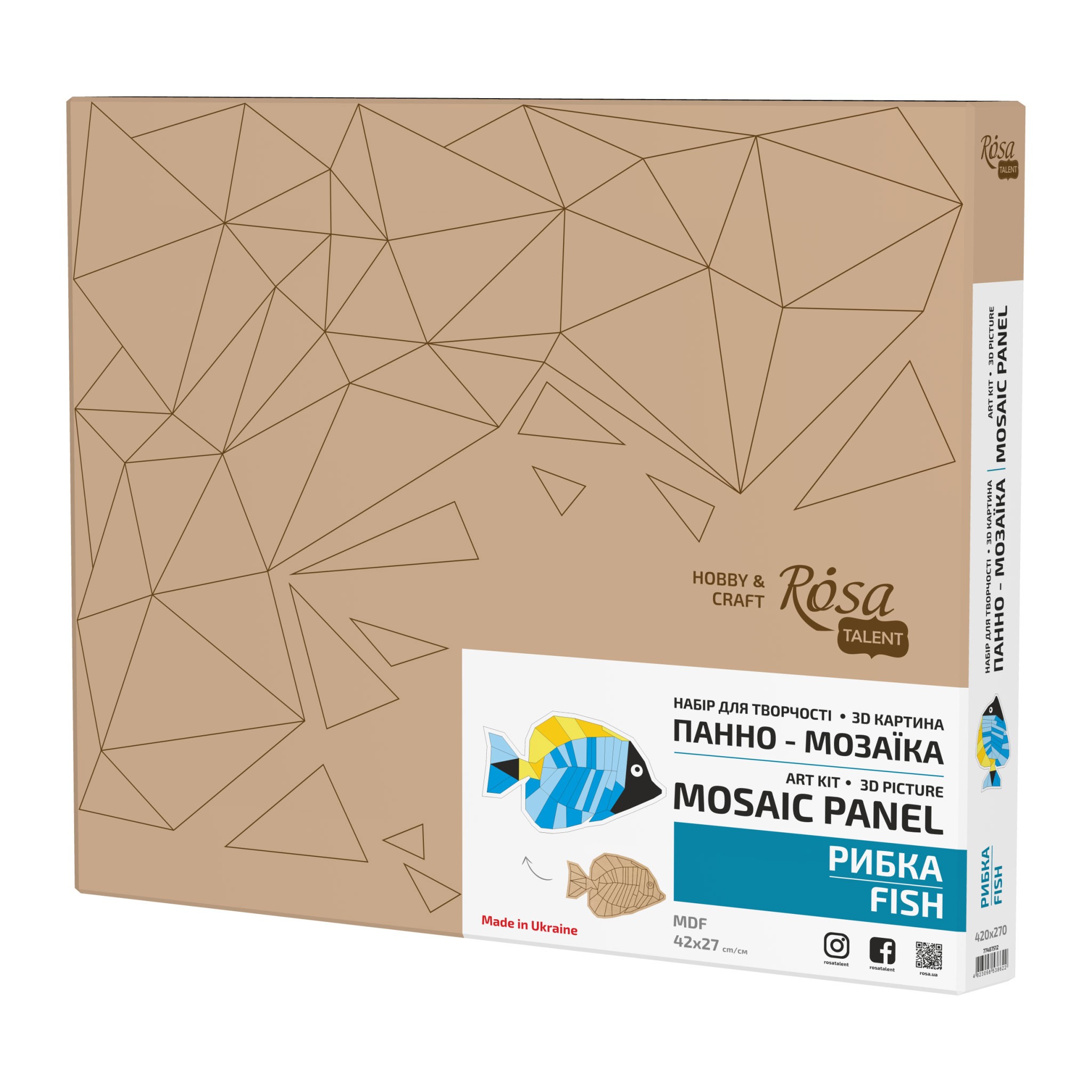 Набір для творчості, 3D картина, панно-мозаїка „Риба“, МДФ, 29х47см, ROSA Talent