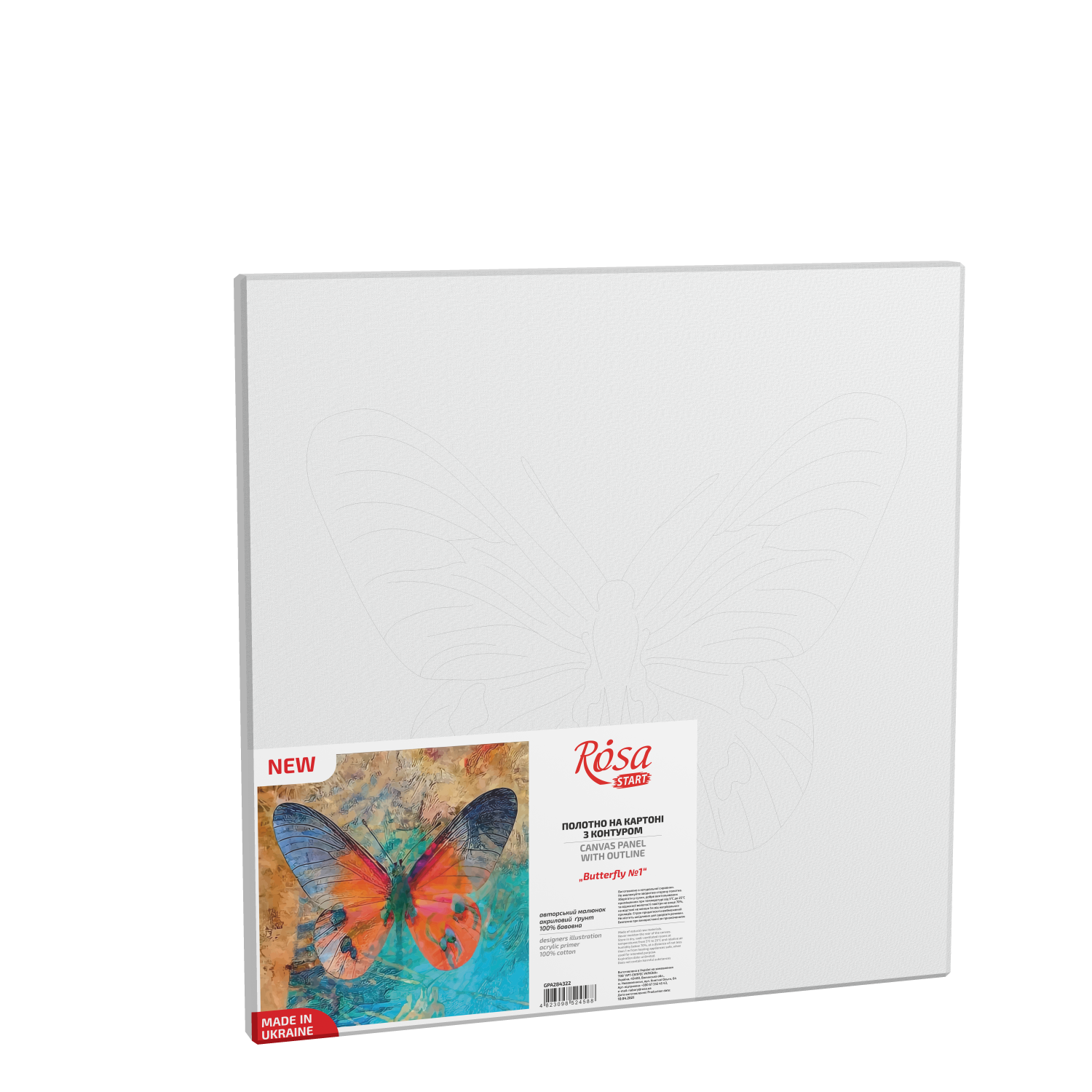 „Butterfly 1“, полотно на картоні з контуром, 30х30, бавовна, акрил, ROSA START