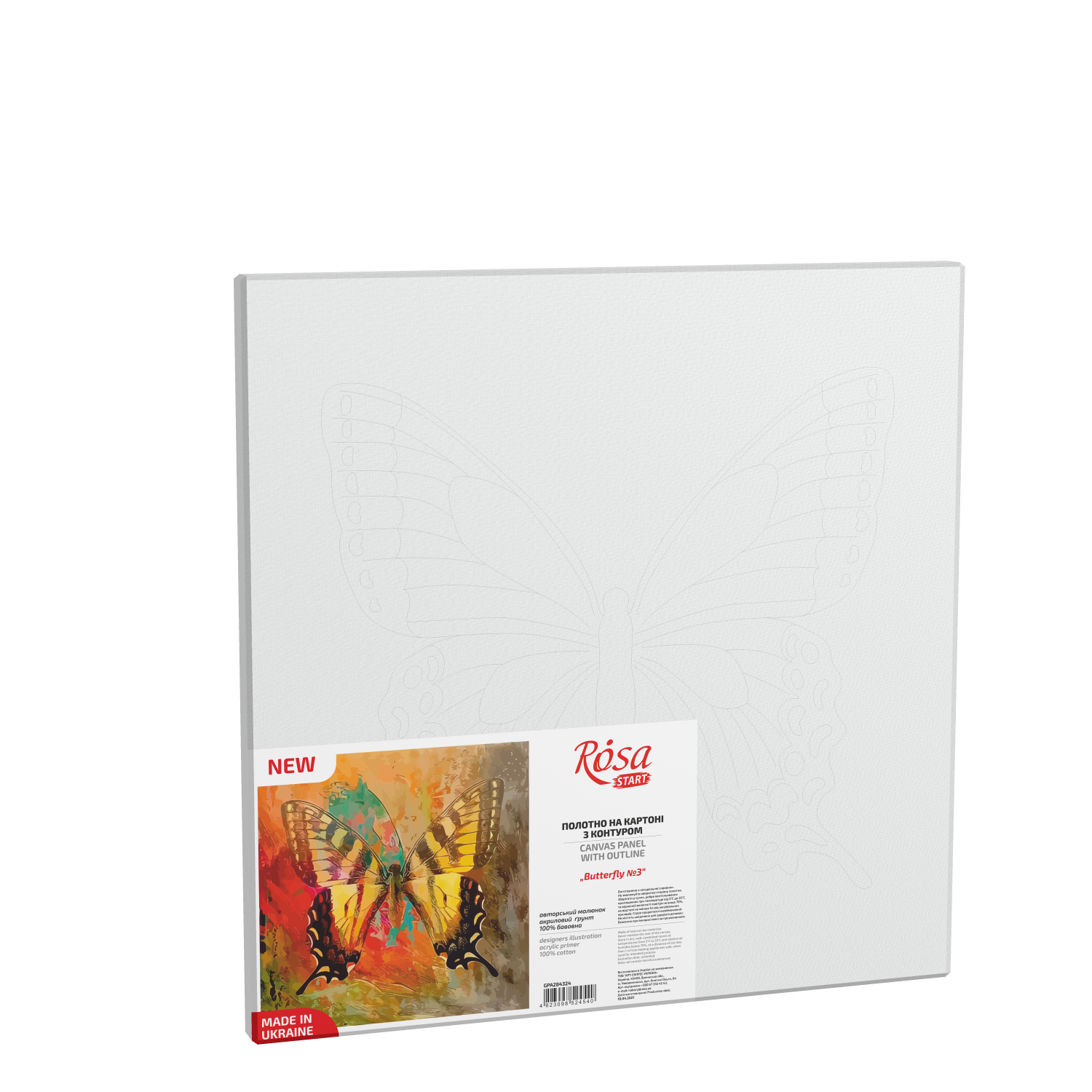 „Butterfly 3“, полотно на картоні з контуром, 30х30, бавовна, акрил, ROSA START