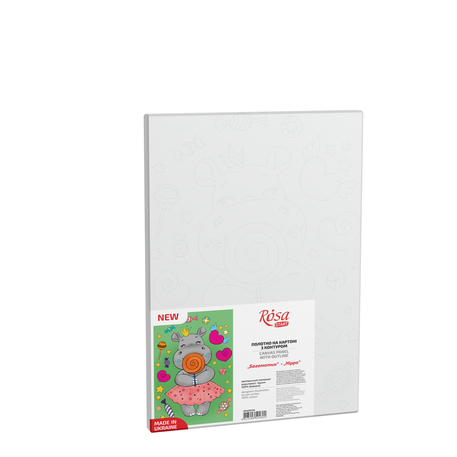 „Бегемотик“, полотно на картоні з контуром, 20х30, бавовна, акрил, ROSA START