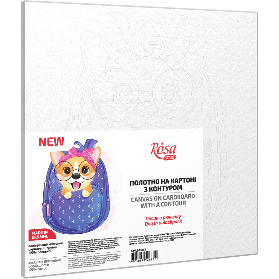 „Песик в рюкзаку“, полотно на картоні з контуром, 20х20, бавовна, акрил, ROSA START
