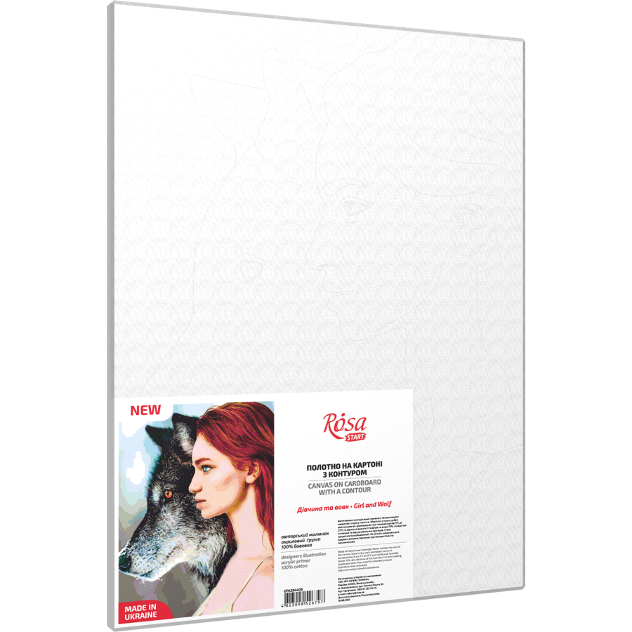 „Дівчина та вовк“, полотно на картоні з контуром, 30х40, бавовна, акрил, ROSA START