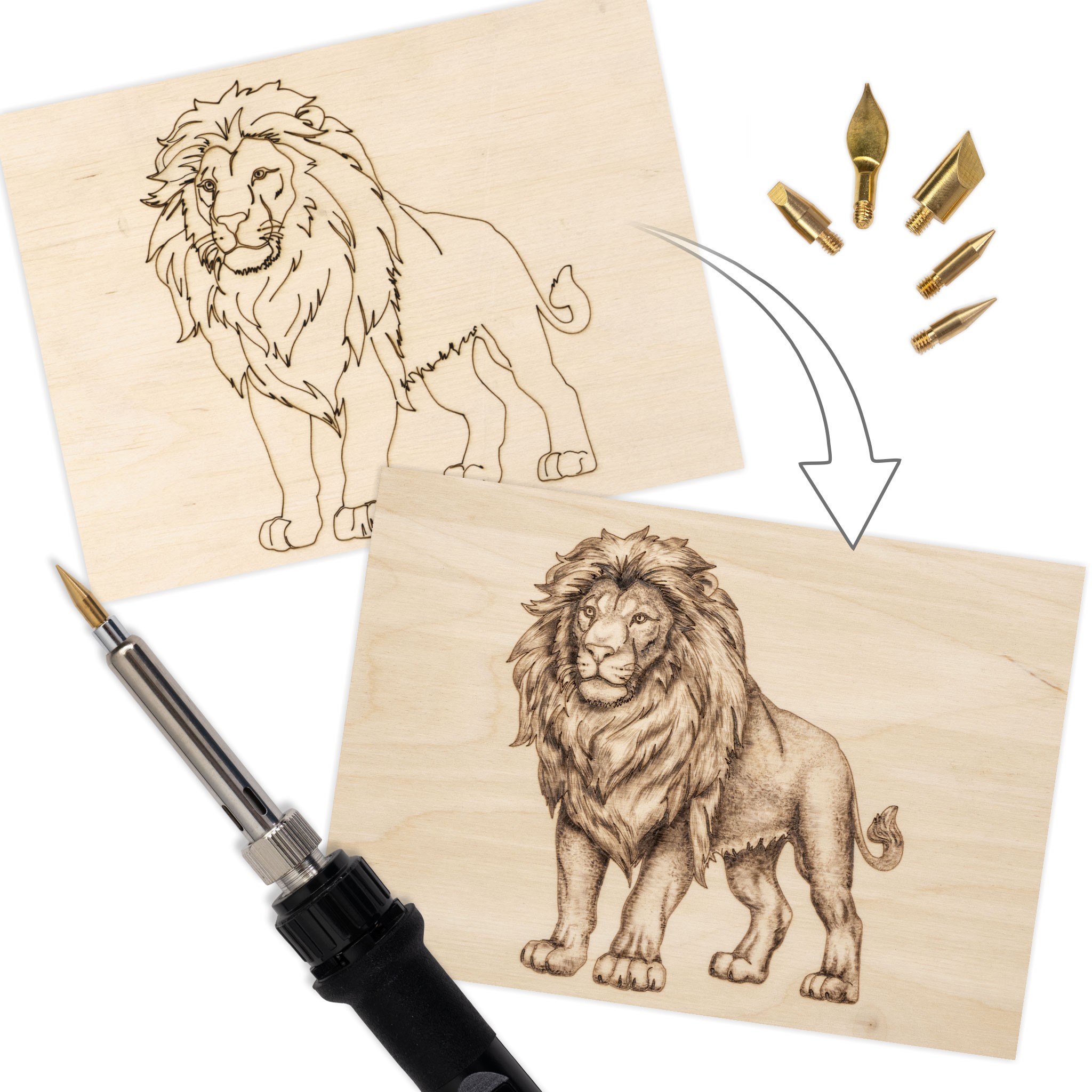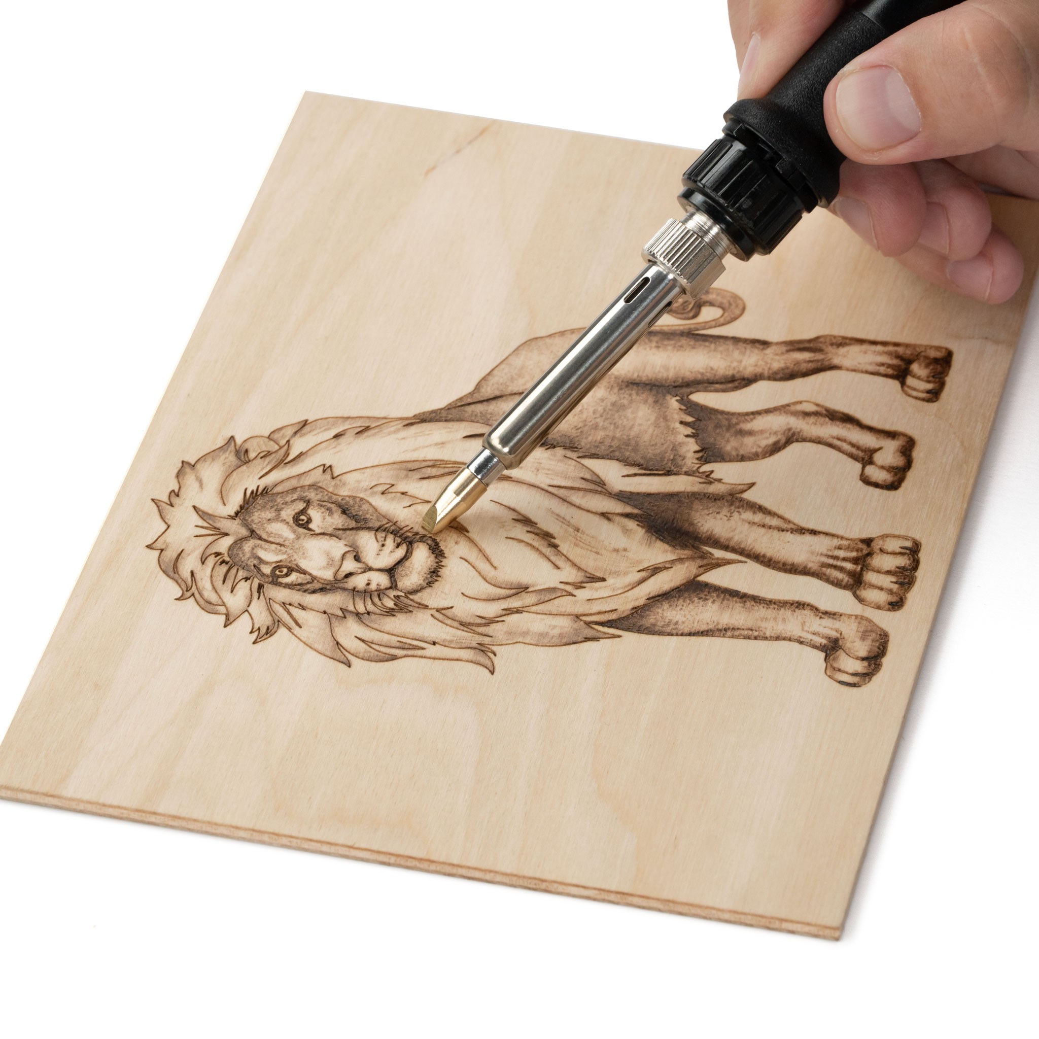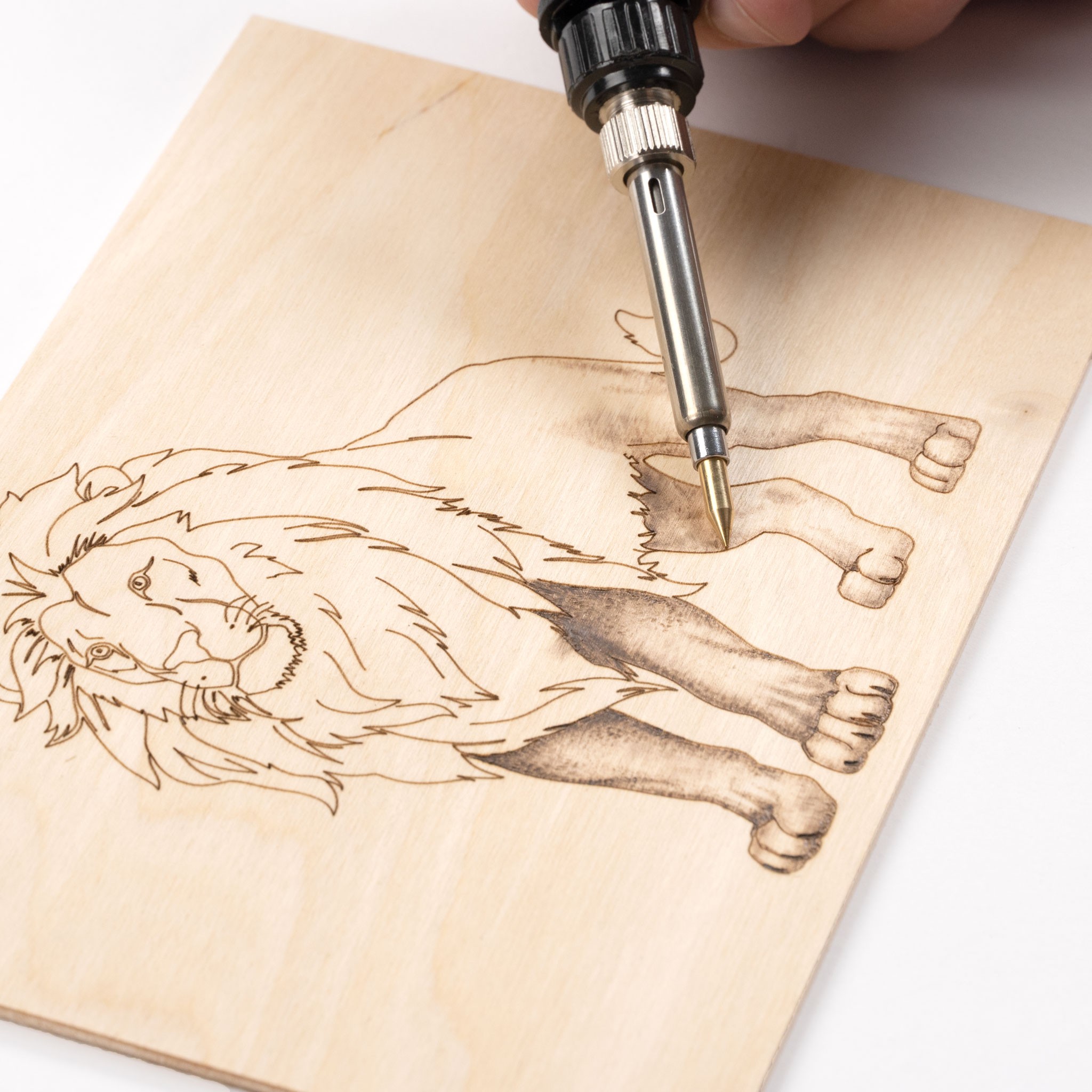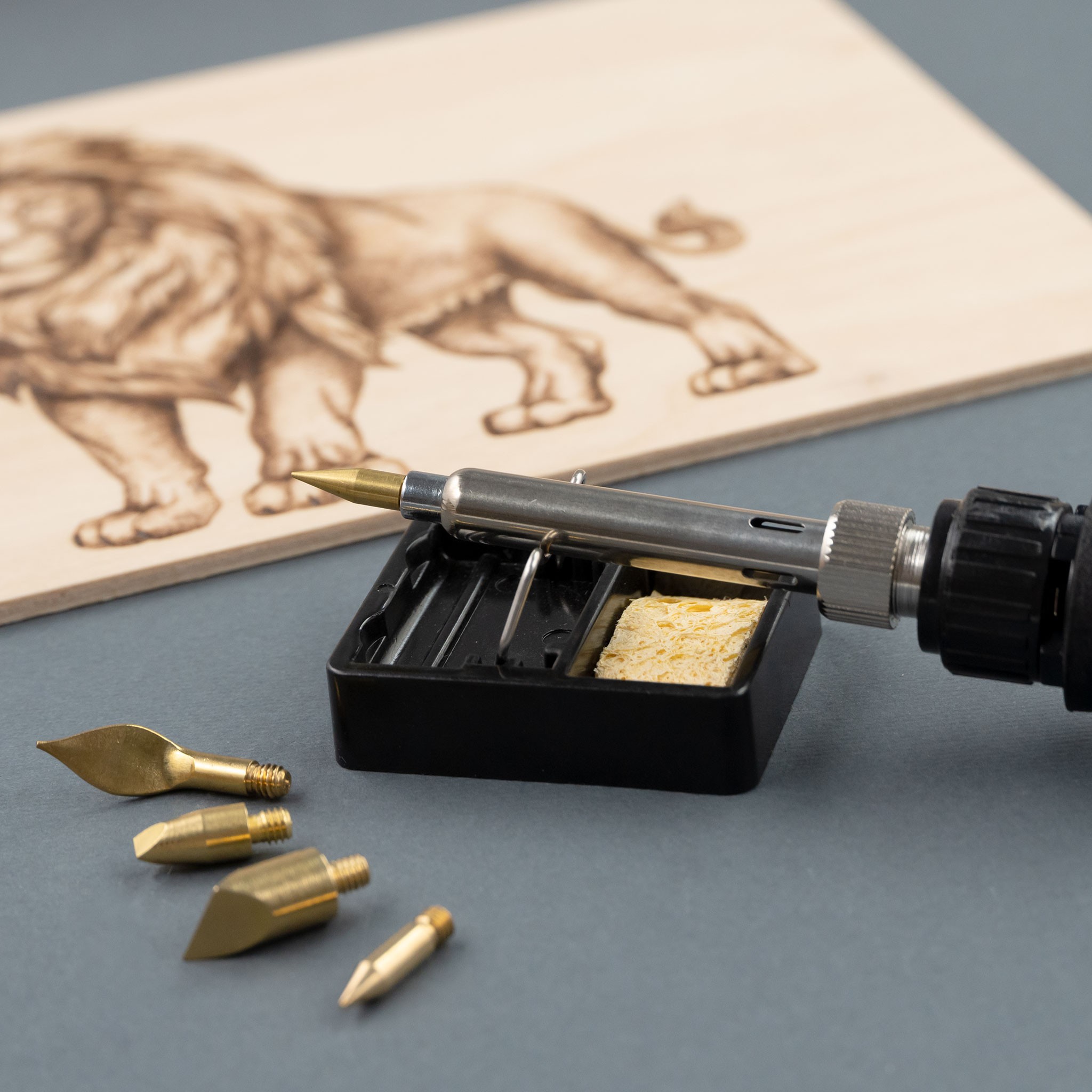 Для випалювання використовується спеціальний прилад – електровипалювач. Робочий елемент електровипалювача – ручка з металевою насадкою на кінці. Підбираючи різні насадки, можна добиватися різної товщини ліній та ефектів у візерунках.