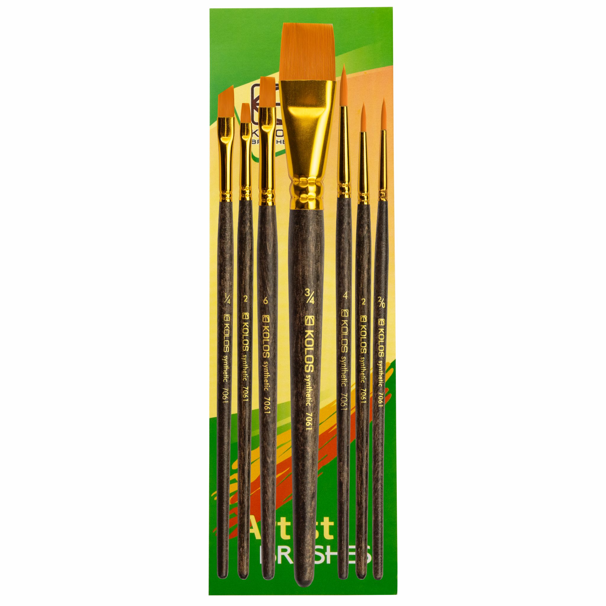 Набір пензлів 7061 синтетика круг/плос/кут. 3/3/1шт KOLOS by ROSA