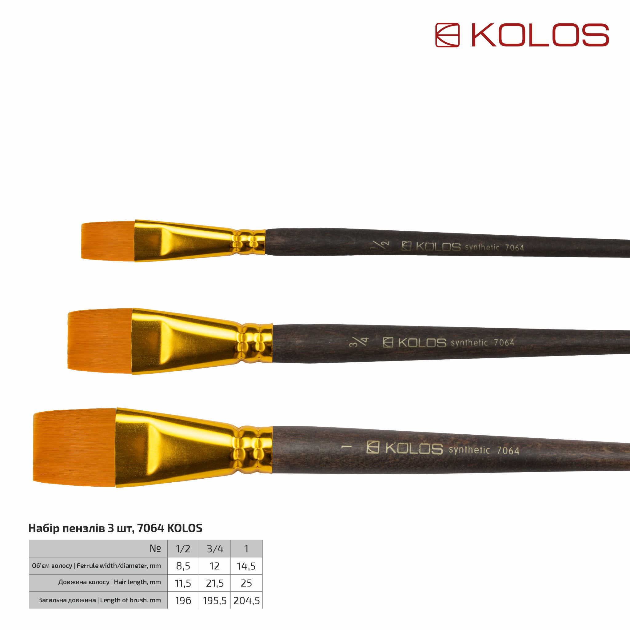 Набір пензлів 7064 синтетика плос. 3шт KOLOS by ROSA