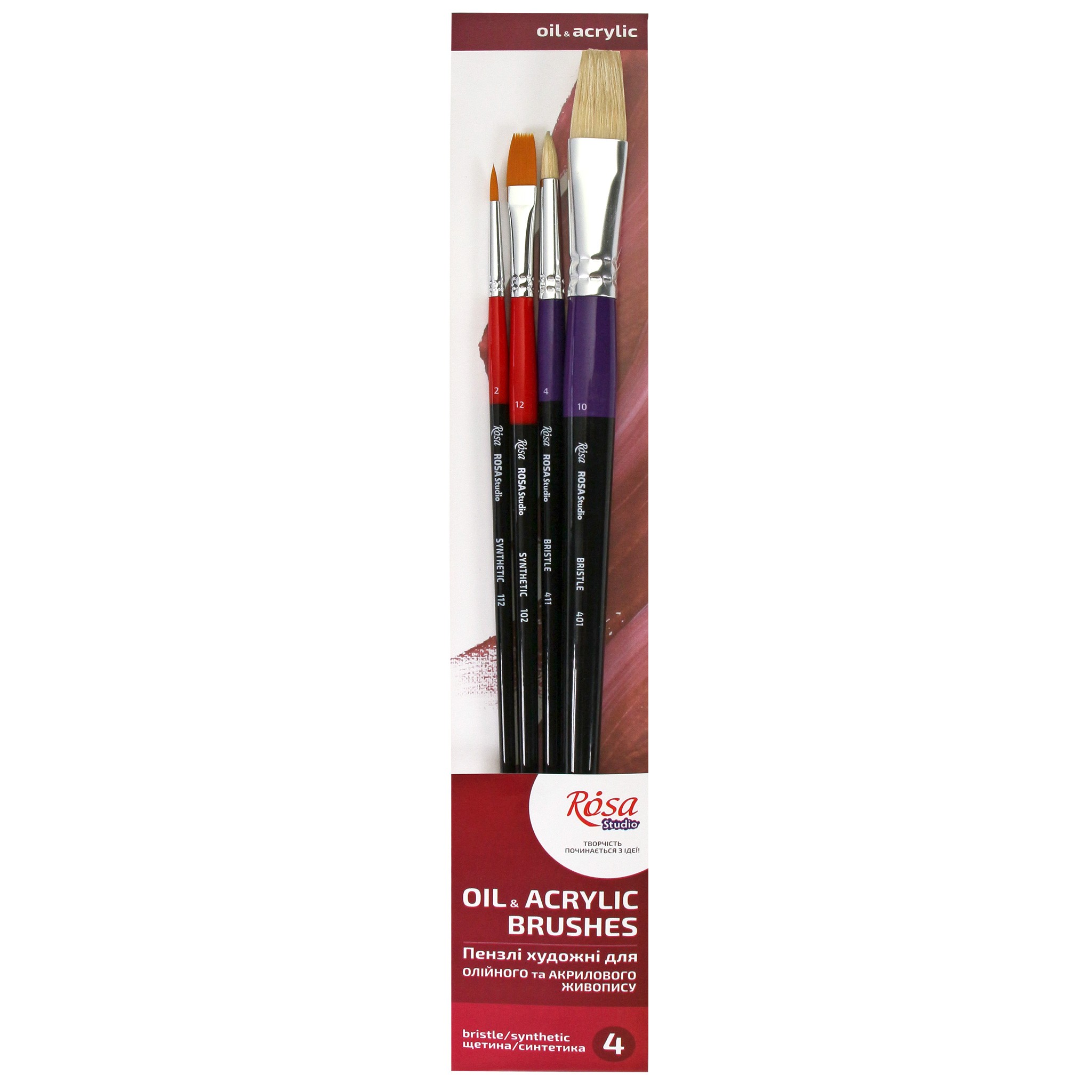 Набори пензлів Мікс 4шт синтетика, щетина д.р. ROSA Studio