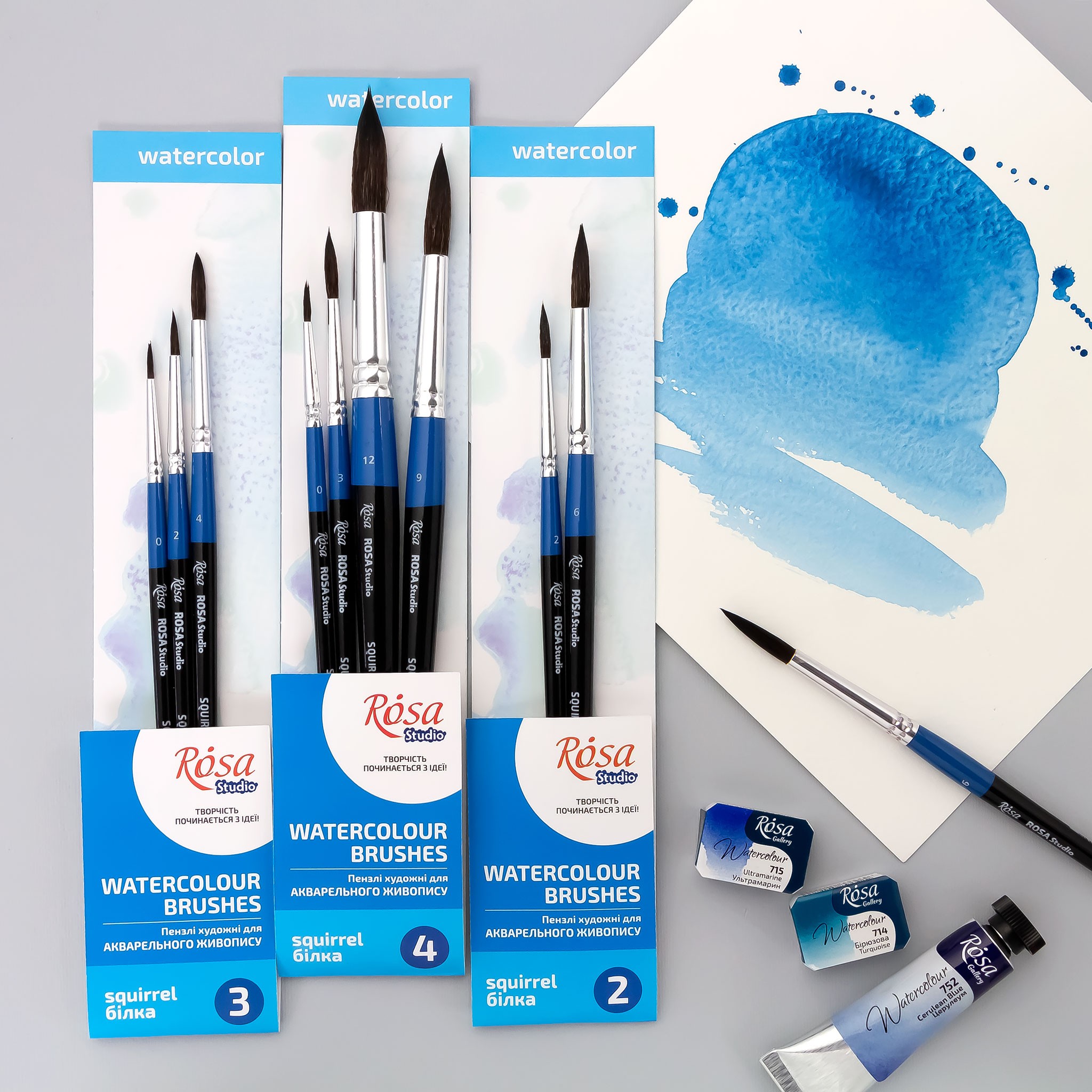 Набори пензлів з волосу білки на короткій ручці – чудове рішення для роботи з акварельними фарбами та гуашшю тому, що краще за інші вбирають рідину.