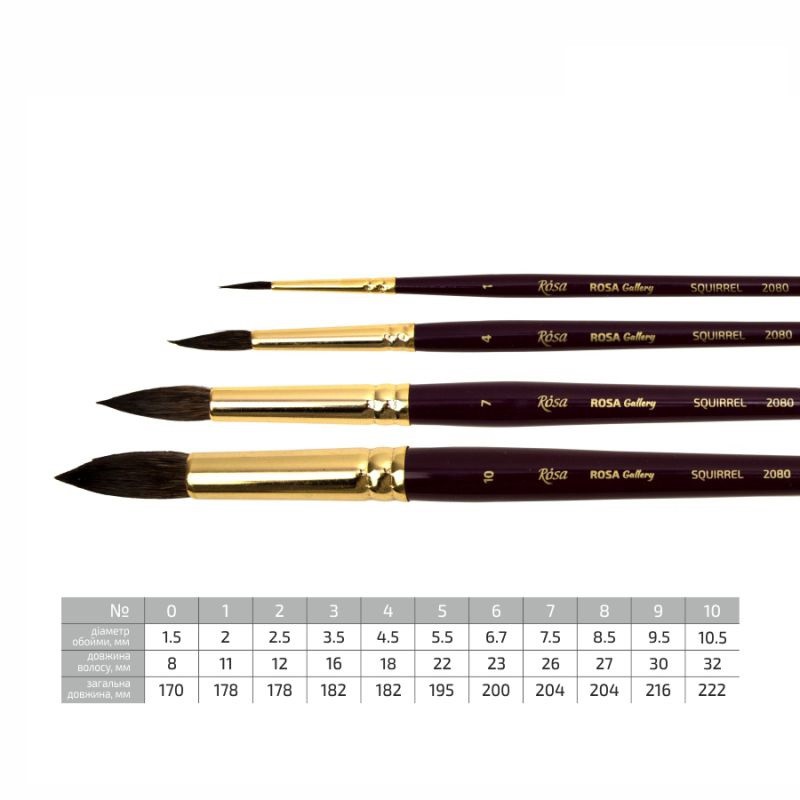 Основні властивості пензлів з волосу білки ROSA Gallery: