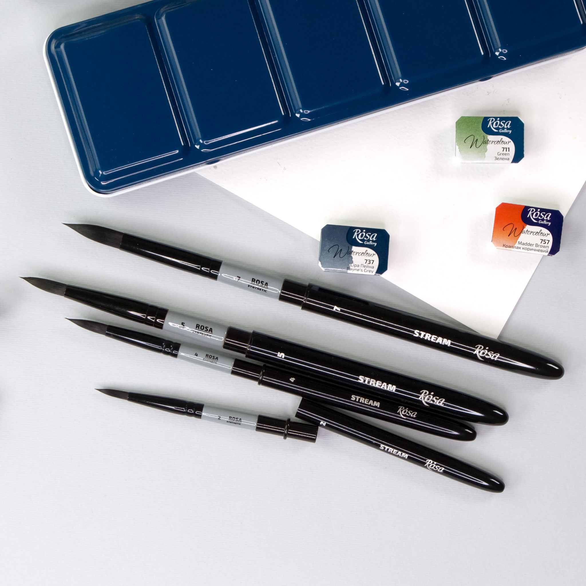 Пензлі для акварелі синтетика кругла ROSA STREAM 158 – це універсальні пензлі, якими виконують точну, деталізовану роботу, а також заливки та широкі мазки в різних техніках акварелі.