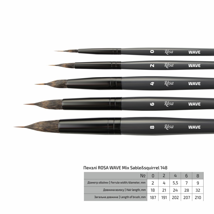 Основні характеристики пензлів мікс білки та соболя WAVE 148: