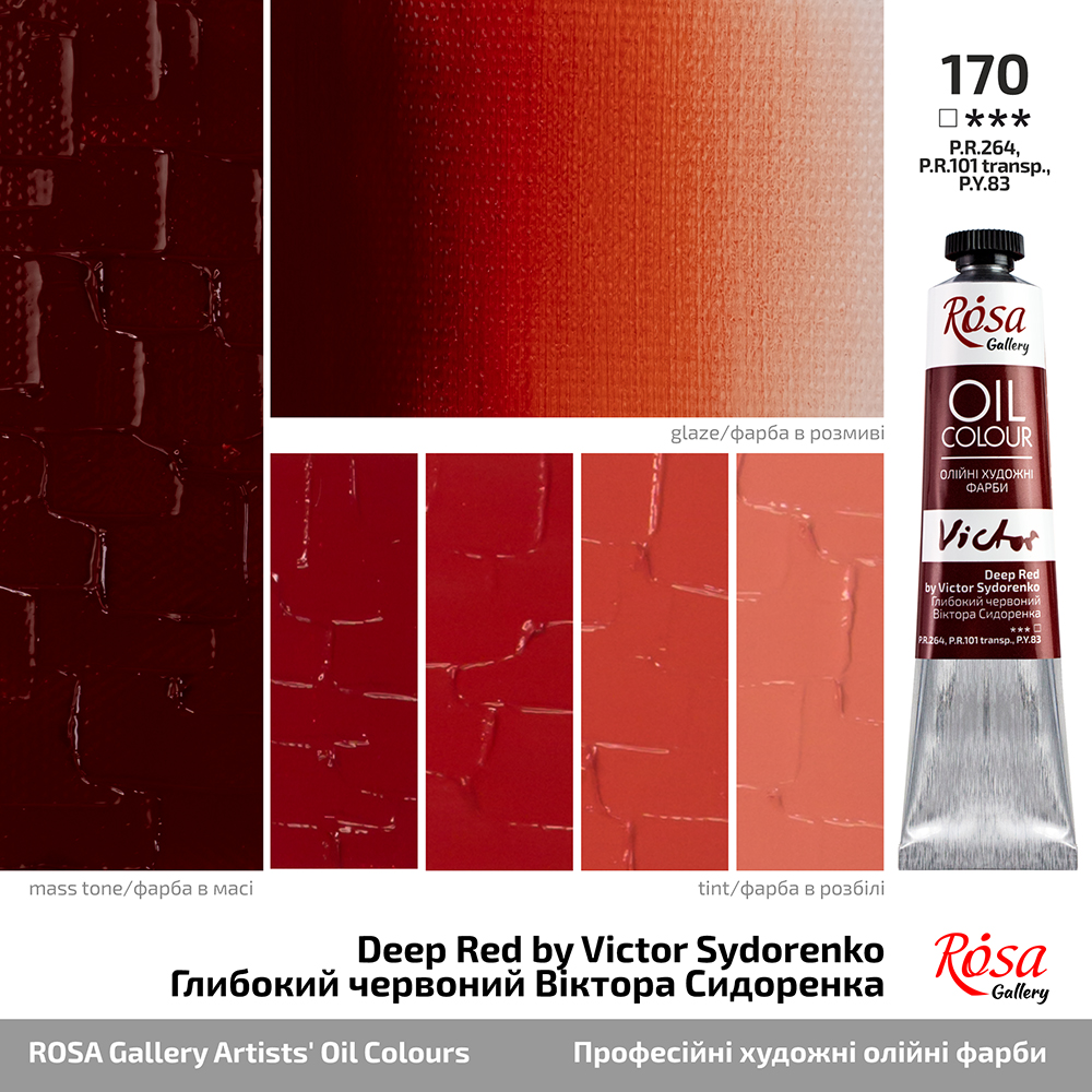 Глибокий червоний Віктора Сидоренка – унікальний колір професійних олійних художніх фарб ROSA Gallery, який вразить глибиною та багатогранністю з першого мазка.